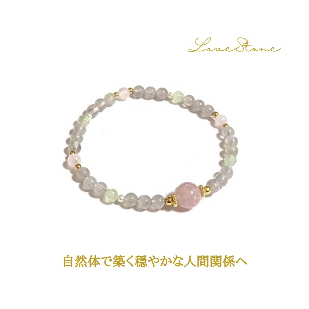 自然体で築く穏やかな人間関係へ ピンクマイカ ラブラドライト ブレスレット 天然石