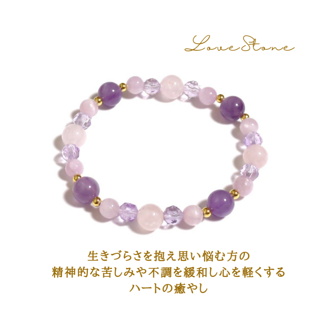 生きづらさを抱え思い悩む方へ精神的な苦しみや不調を緩和するハートの癒やし ラビットヘアーアメジスト パワーストーンブレスレット